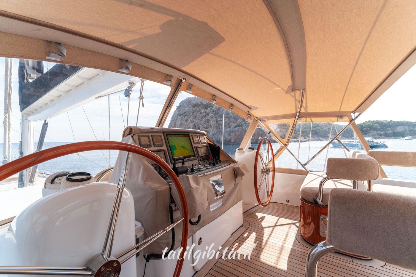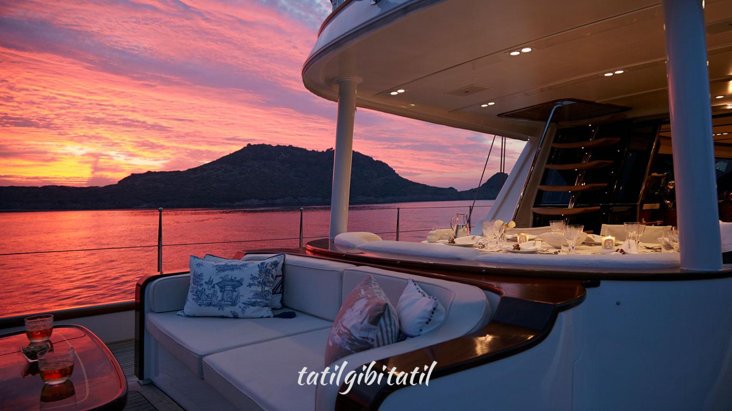 Güverte Olanakları: İstek üzerine (müsait havalarda) yelken ile seyir yapılmaktadır. Yatımızın ön bölümündeki alanlarda güneşin keyfini çıkarabilirsiniz. Güvertenin arka tarafında ise yemek ve eğlence alanı bulunmaktadır..