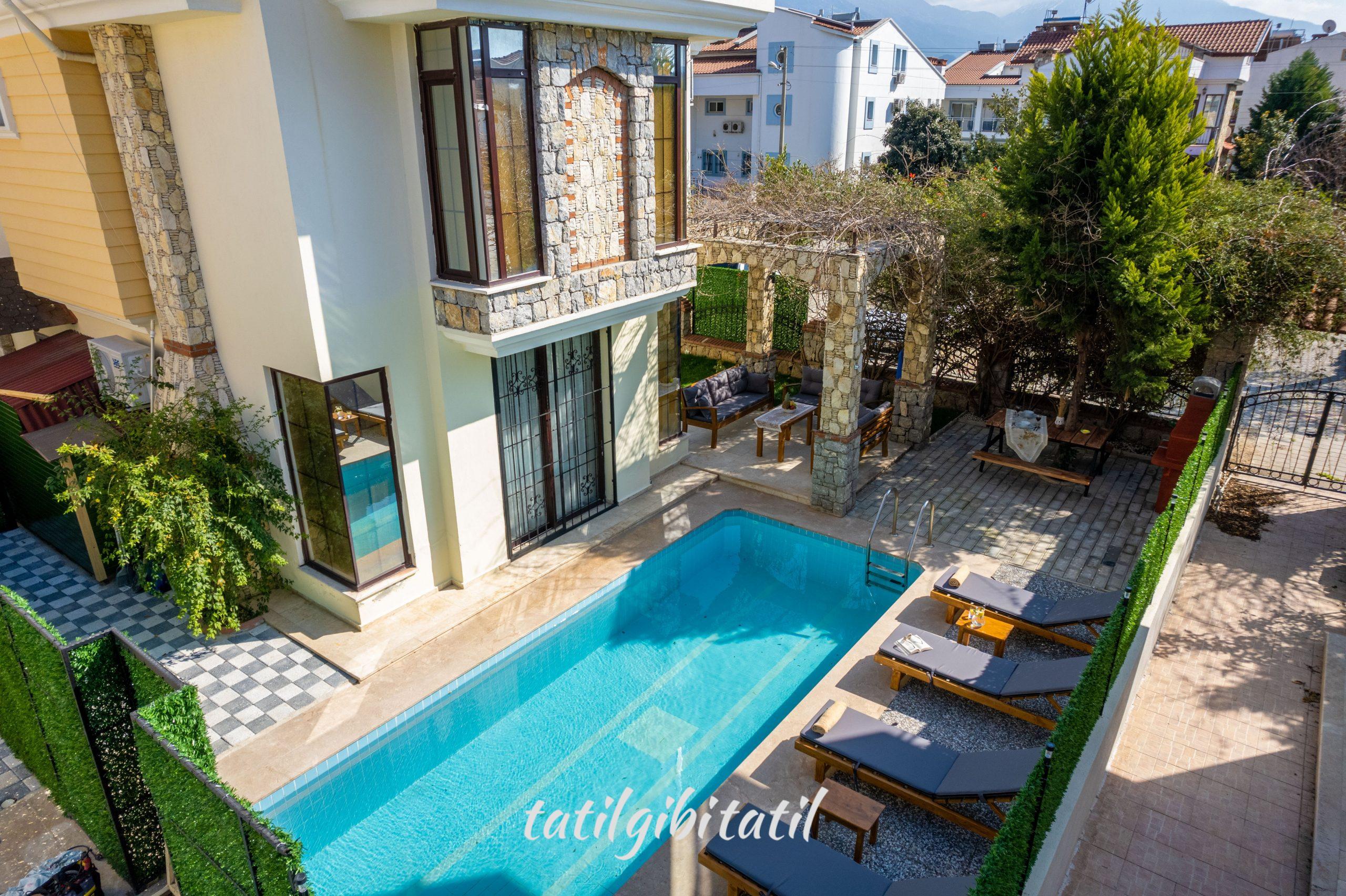 Müstakil, 4+1 villamız; (tribleks, tabanda 70m2, toplamda 210m2) gözde turizm ve tatil cenneti Fethiye’de olup, Çalış Plajı’na 5dk yürüme mesafesinde’dir.